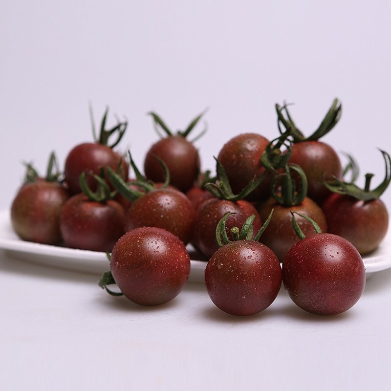 深褐色至黑色的迷你番茄,果實(shí)色澤嬌艷,果形圓渾無暇,具有濃郁的水果香味。植株無限生長,生長旺盛,單果重約30g。品質(zhì)優(yōu),裂果少,并有成串采收的優(yōu)點(diǎn)。